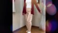 前だけ少しインするか、短め丈のトップスを選ぶと腰位置が高く見えてエレガントです。